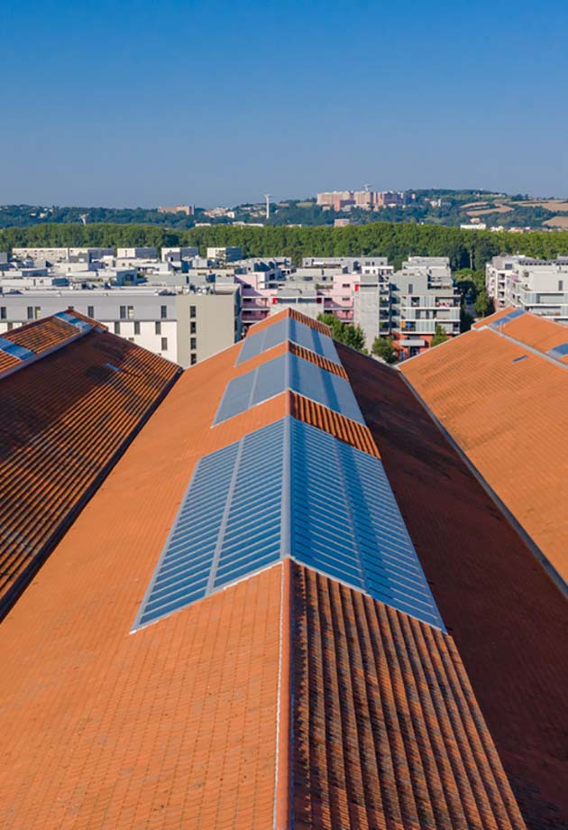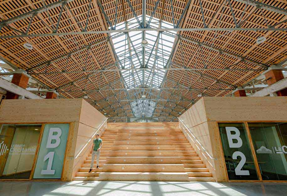 In Toulouse, France, the national birthplace of aeronautics now functions as a dynamic office and event space full of daylight