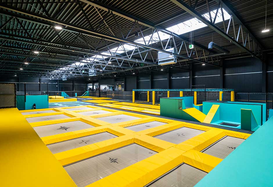 A new sports and leisure attraction has opened in Klagenfurt am Wörthersee, Austria. Jump World One is a dynamic sports centre with a trampoline park that includes 90 jump areas. This large hall is open plan and covers a total area of more than 5,000 square metres across two floors. This includes play areas, a fitness space, dance school and changing rooms.