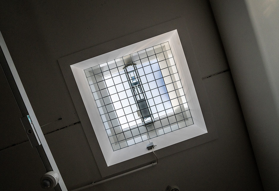 In the event of an emergency, the dissipation of heat and toxic gases is achieved through smoke and heat exhaust ventilation (SHEV). The certified SHEV system is a significant component of the hall's safety and fire protection concept. VELUX Commercial not only supplied and installed the system but will also carry out annual mandatory maintenance of the SHEV system by certified technicians. Dome rooflights provide the stairwell with natural light from above and ensure smoke and heat extraction in the event of a fire.