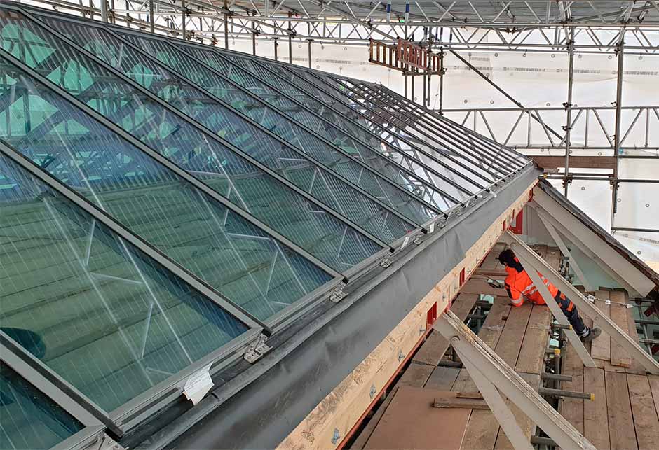 A glass roof replacement as part of sustainable refurbishment design