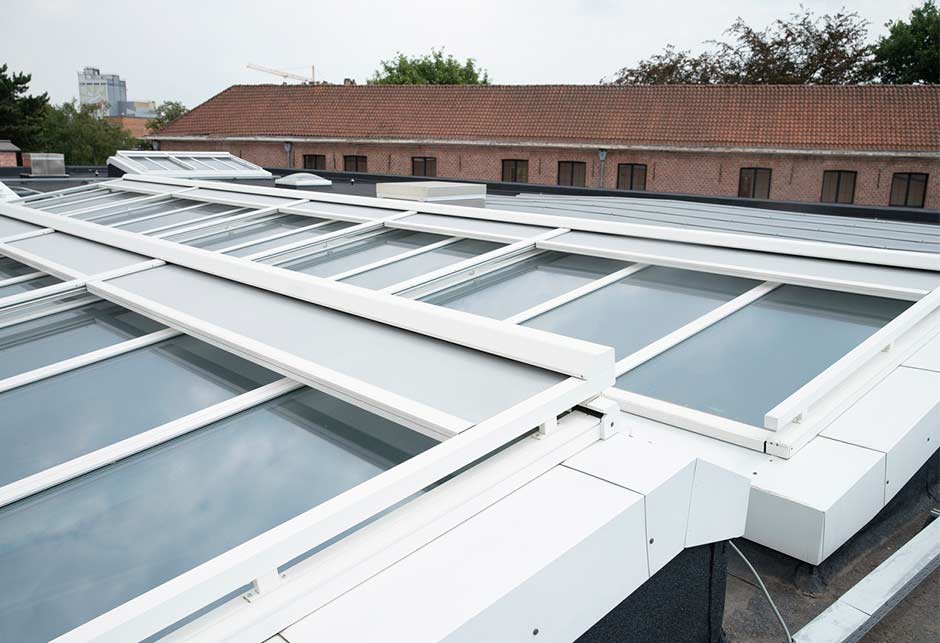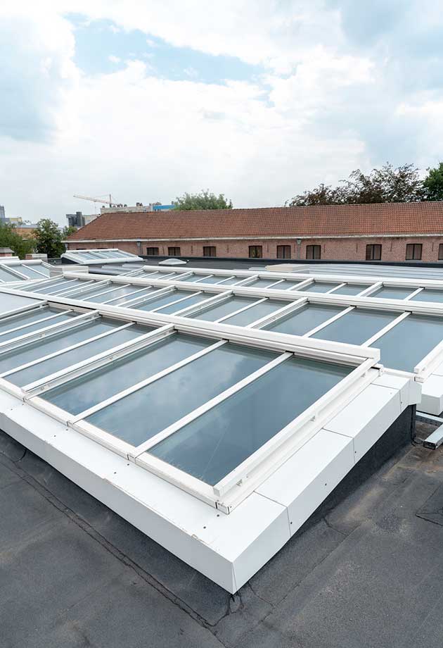 Multiple rows of skylight modules that can be combined to create a large glass roof.